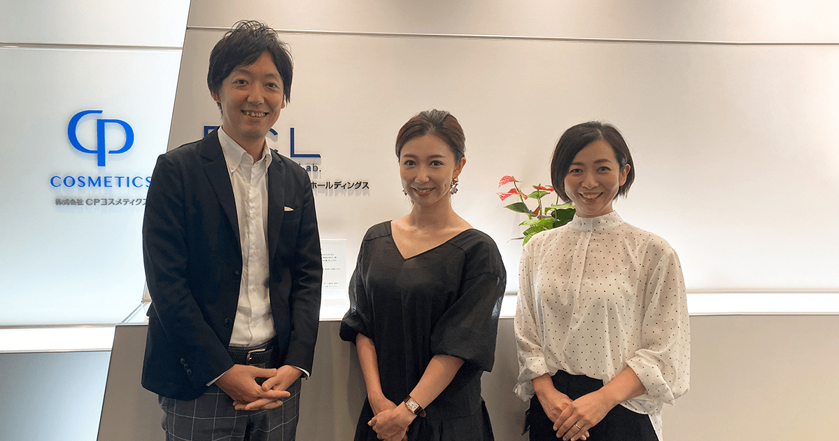 This time, we interviewed Mizutani (left), Masaki (center), and Kiuchi (right), who are in charge of marketing at CP Cosmetics, Inc., and who have been supporting us with Instagram account management, creative photography, and other customer acquisition strategies for the past three years.